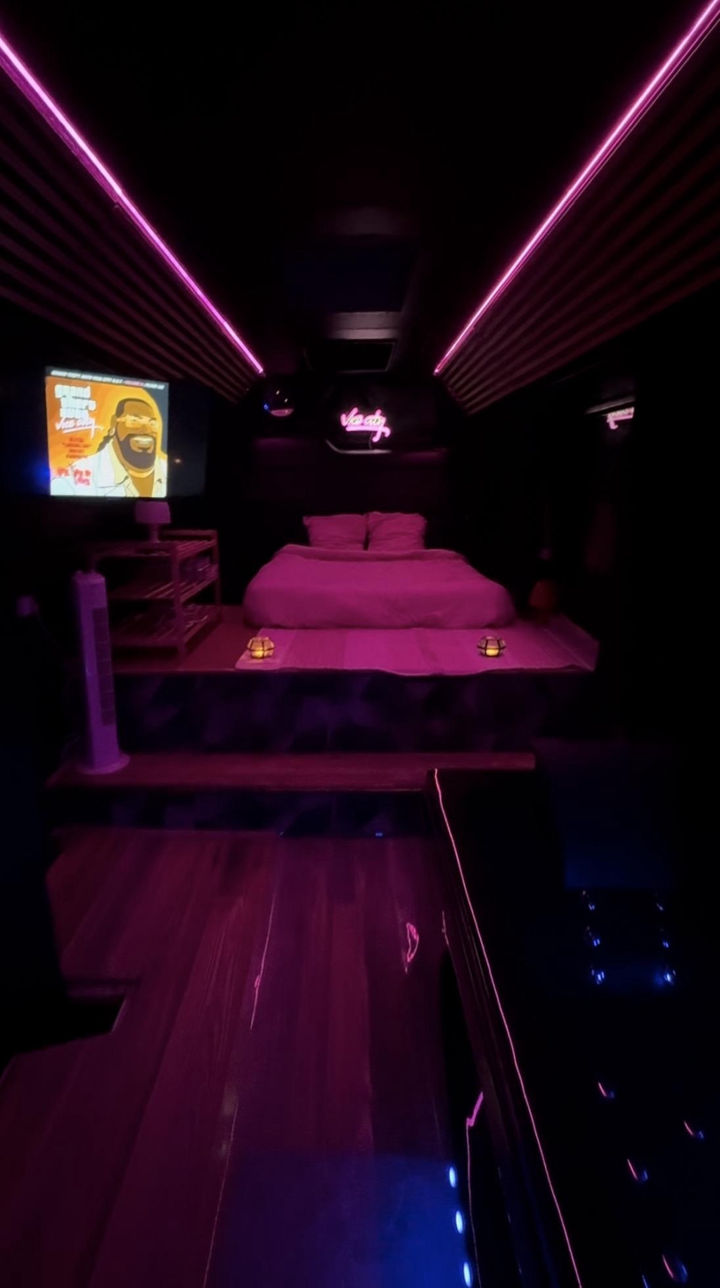 Un décor inspiré des road-trips et des univers rétro colorés, le jacuzzi privatif, le calme absolu, l’environnement naturel…