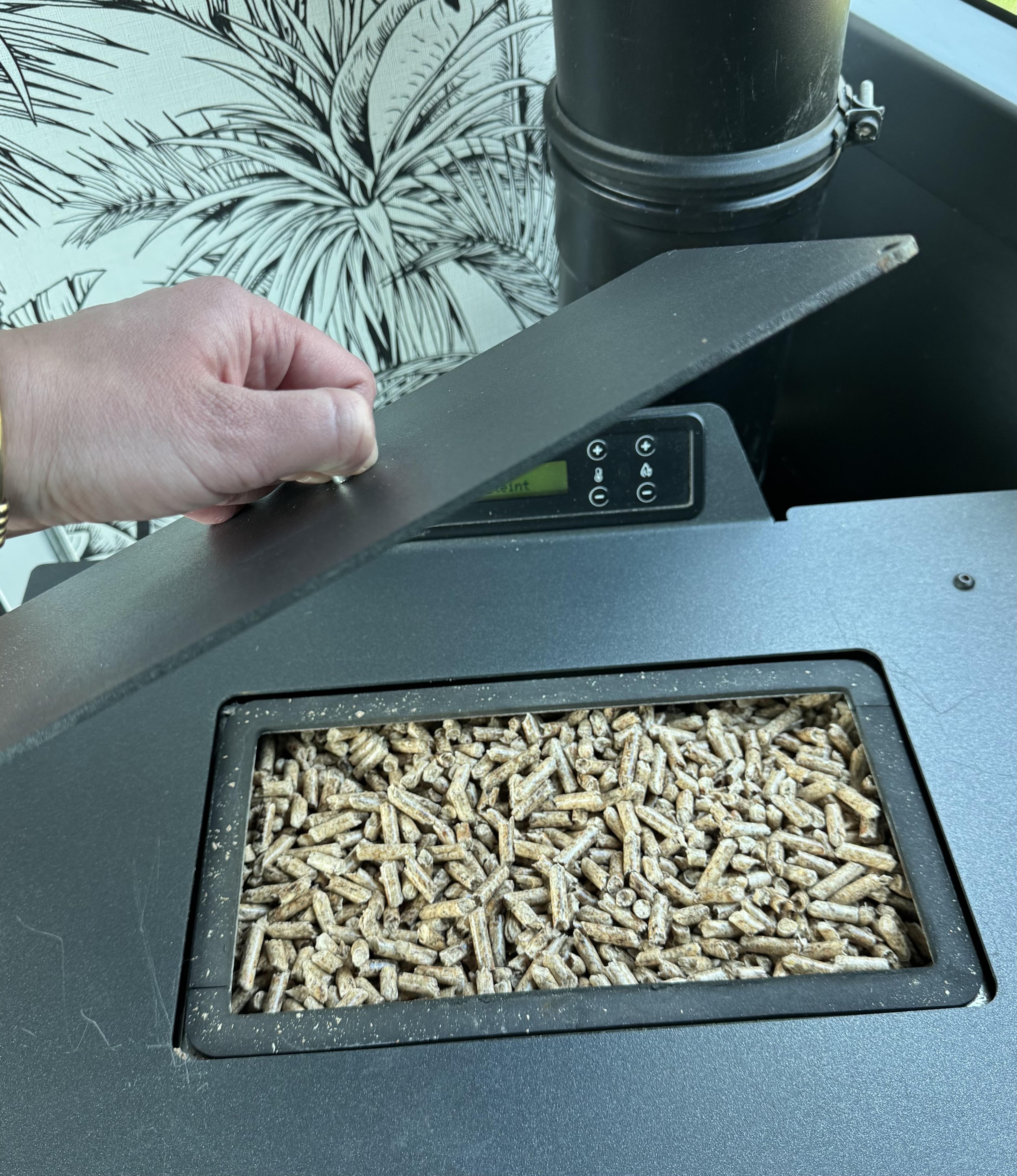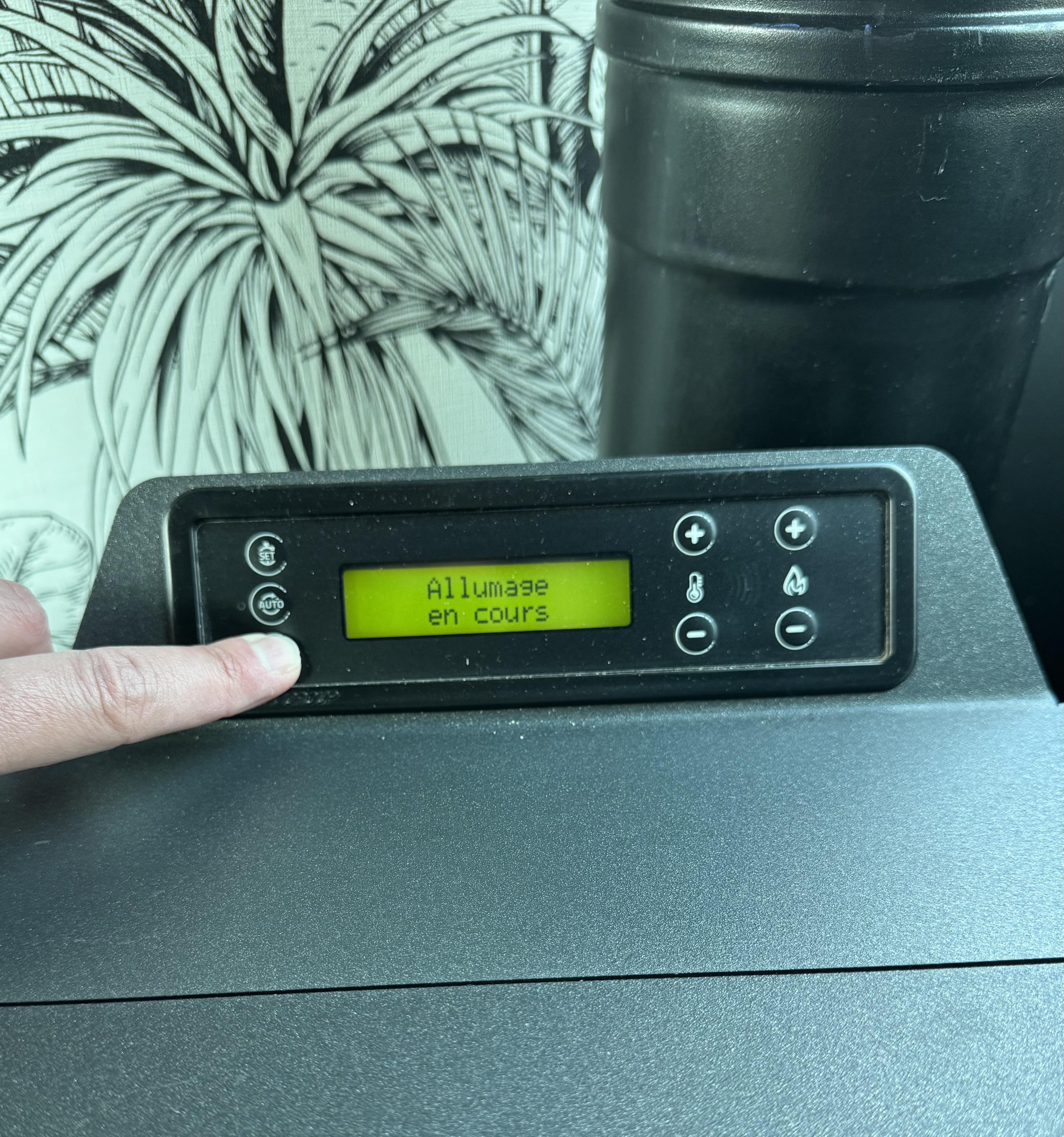 - Recharger en pellet en ouvrant la trape le poêle éteint