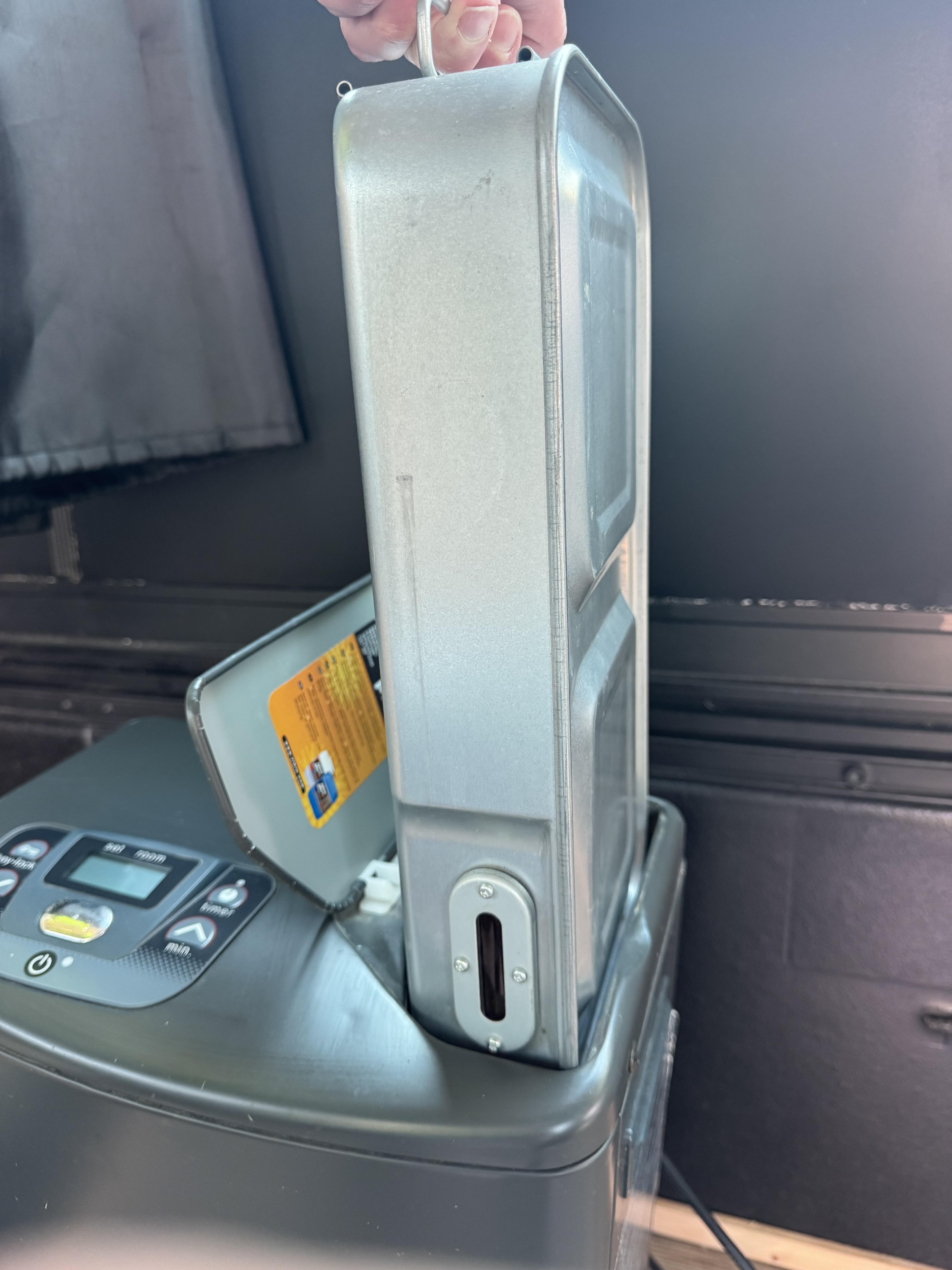 - Pour recharger en pétrole, ouvrir le réservoir.