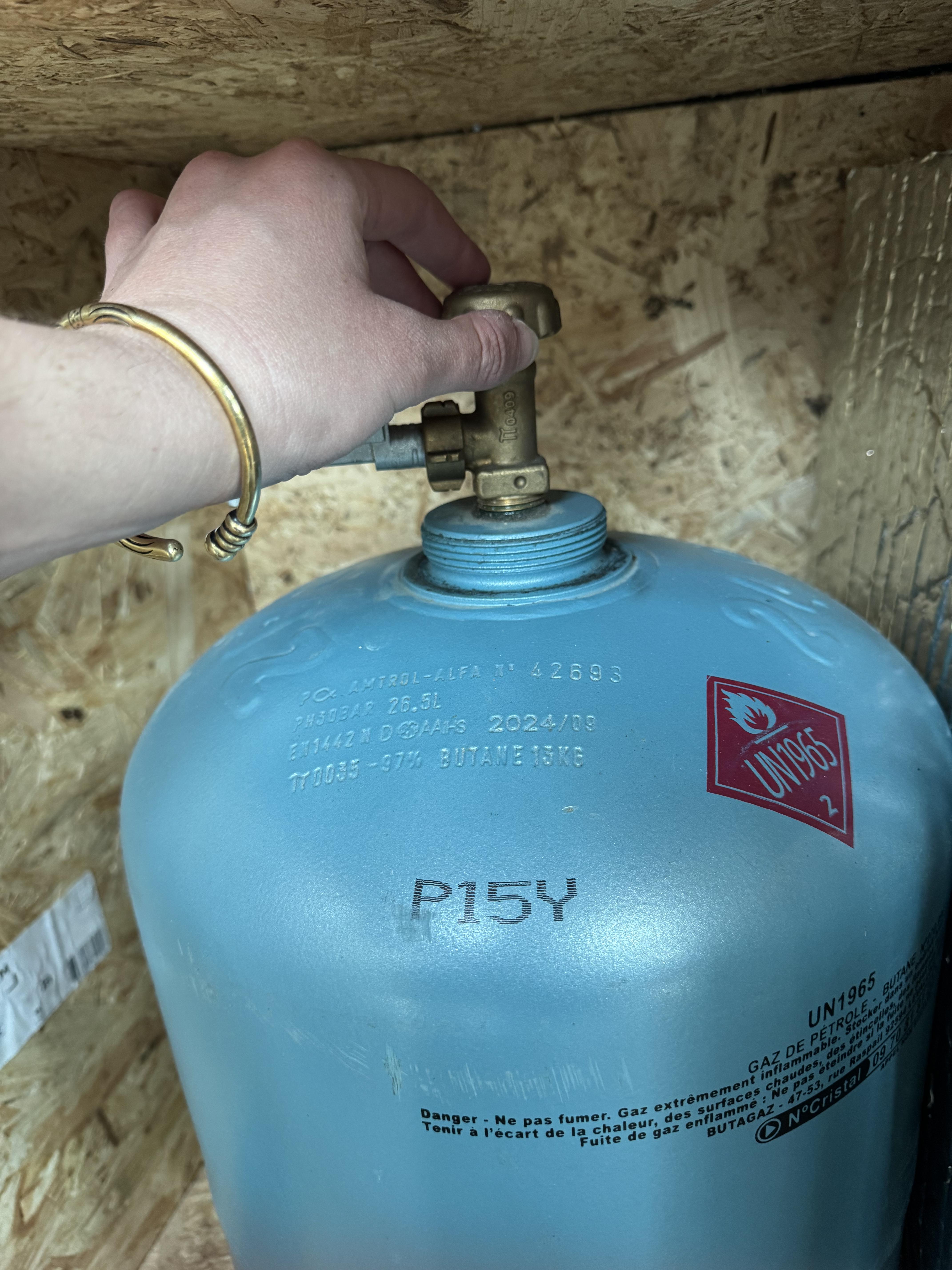 - Vous trouverez le bidon de pétrole à l’extérieur devant le bus.